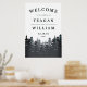 Welcome guests to your rustic, woodland or mountain wedding with our Winter Forest poster, featuring a bottom border of evergreen pine trees in rich shades of blue and charcoal grey. Add your names, wedding date and custom welcome text using the fields provided.
