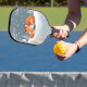 A cute winter fox is pictured on this pickleball paddle, sleeping in a snowy landscape. The reverse side of the paddle is a chestnut colour with dark grey stripe, and can be personalised with a name. With simple modern appeal, the winter fox pickleball paddle makes an ideal Christmas gift for pickleball players and animal lovers.