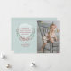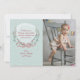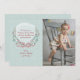 A delicate wreath of berries, foliage and flowers tied with a bow against a light sea-foam, snowy background. Pair it with your photo for a one-of-a-kind greeting card.