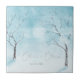 Ceramic tile with watercolor winter refined landscape in blue tones. In the centre are two trees covered with snowy frost haze, the branches of the trees create a thin web against the sky and stretch towards each other in winter charm creating an idyll for many years to come. Winter fresh tender ceramic tile. Winter Freshness Collection.