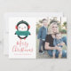 Share the holiday spirit by sending loved ones our Winter Friends holiday photo card. The cute holiday photo card features a penguin wearing earmuffs and a sweater with "Merry Christmas" displayed below in a red, modern calligraphy script. Personalise the holiday card by adding your name and favourite photo. The back of the card features a red and white dot pattern.