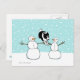 Cute illustration of a Border Collie jumping over the arms of two snowmen. A cool holiday postcard for pet services to customise and send to customers, friends and clients. Great for veterinarians, pet sitters and dog walkers. A fun Christmas postcard for anyone who loves Border Collies and agility dogs. Visit Jenn’s Doodle World for even more products with this fun cartoon dog design, as well as more dog breed Xmas cards and gifts.