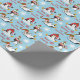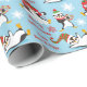 Three adorable little black and white penguins are having winter fun on this cute Christmas wrapping paper. One penguin is making snowballs. Another one is carrying a green and red striped heart shaped candy cane. Another one is sliding on a patch of ice. All of the penguins wear brightly coloured winter stocking caps. A few red or white snowflakes drift down around them. Your custom text is in red, and everything is placed on an icy blue background.