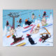 Cute and colorful Labrador Retriever Winter Skiing Painting. Black Labrador, Chocolate Labrador, Yellow Labrador are all painted in the picture. Happy Labrador Retriever dogs enjoy skiing in Labrador Fancy Ski Resort!!! They really love snow and winter sport. Whimsical and funny Labrador Retriever Painting painted by Naomi Ochiai. Nice dog gifts for Labrador lover's home. Great fun gifts for yourself, too.