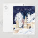 Winter gate at night watercolor postcard
