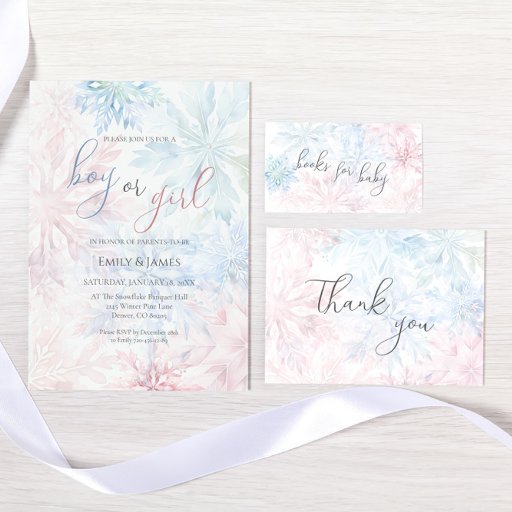 Winter Gender Reveal Party Pink Blue Snowflake Invitation