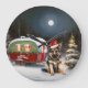 Winter German Shepherd Caravan Christmas Adventure Large Clock