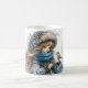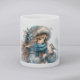 Winter Girl with Bird in Blue Floral Coat Coffee Mug