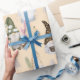 Cute winter gnomes pattern wrapping paper! This pattern print has several different whimsical Scandinavian gnomes and trees against a beige background.