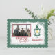 Winter green 5x7 holiday card is a beautiful choice for your company team photo. Gold bell beautifully accompanies your company logo. The ornate iron frame holding the gold bell is completely colour-changeable, along with the text and background colours. Budget company Christmas cards are easy to personalise with other sizes available. Elegant burgundy script is a finishing touch to this vintage green Christmas card. Green shade is versatile for forest green, pine tree green, pine needle green, or hunter green colour themes.