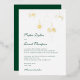 Elegant gold foil Christmas bauble ornaments, winter green wedding invitation with elegant script font. Detailed hanging gold foil bauble ornament designs. Customise with your names and your wedding information in pine green script font and serif lettering. Pine green back. Designed to match our Winter Green & Gold Christmas Bauble Ornaments Wedding Collection.