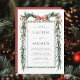This wedding invitation features a watercolor winter greenery garland adorned with pine branches, holly berries, botanical foliage, red ribbon bows, and elegant calligraphy. For more advanced customisation of this design, please click the BLUE DESIGN TOOL BUTTON above! Matching items are also available.