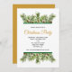 This holiday Christmas party invitation features a clean white background accented with a watercolor graphic of winter evergreen foliage.