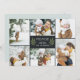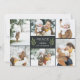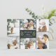 Elegant botanical holiday photo card features six of your favourite photos in a geometric collage layout. "Peace" or your short custom holiday greeting appears in the centre, flanked by two green olive branches on a rich charcoal off-black background. Personalise with your names, and add an additional photo to the back, along with the year beneath.