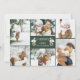 Elegant botanical holiday photo card features six of your favourite photos in a geometric collage layout. "Merry" or your short custom holiday greeting appears in the centre, flanked by two sprigs of white flowers on a deep hunter green background. Personalise with your names, and add an additional photo to the back, along with the year.