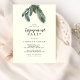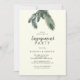 This winter greenery on ivory engagement party invitation is perfect for an elegant event. The modern fall or winter design features simple watercolor greenery and dark olive leaves with a rustic holiday feel.