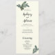 This winter greenery on ivory wedding program is perfect for an elegant wedding. The simple fall or winter design features modern watercolor greenery and classy dark olive leaves with a rustic holiday feel.
