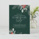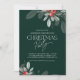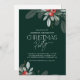 Modern office Christmas party invitation featuring elegant winter greenery and berries. The dark green background is accented with white trendy handwritten style text.