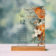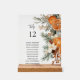 Table sign with table number and guests names, small seating chart table top sign featuring watercolor cinnamon, dry oranges, pine tree.