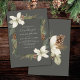 Winter pine cones and white flowers on a grey with elegant script wedding invitation.