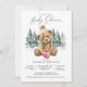 Welcome loved ones with this charming winter holiday baby shower invitation featuring a watercolor teddy bear in a knit hat, with a pink ornament, against a snowy pine forest. The soft, minimalist style sets a cosy seasonal tone while keeping the focus on your celebration. Ideal for baby showers hosted during the winter or Christmas season, this design blends festive warmth with sweet, timeless details. Personalise the wording to suit your gathering and make it uniquely yours.