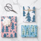 Winter Holiday Blue Trees Patterns Variety Gift Wrapping Paper Sheet