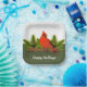 Accent the decor of your winter kitchen or dining room with this pinecone and snowflake paper plate. This uniquely designed paper plate also features fur tree branches and green and an overlay of a cardinal bird in the centre A paper plate like this would also compliment a woodsy Christmas theme.