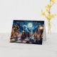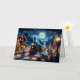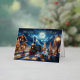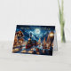 A lovely watercolor image of a nighttime winter scene with a vintage steam locomotive arriving at a station adorned with festive Christmas lights. Snow blankets the ground and rooftops, and the backdrop features towering mountains under a starry sky with a full moon. The warm glow of the train’s headlamp and the twinkling lights create an inviting and cosy holiday atmosphere, evoking feelings of nostalgia and celebration associated with the Christmas season.