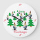 Winter Holiday Gnomes Christmas Trees Thunder_Cove Large Clock