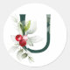 Winter holidays MONOGRAM red poinsettia berries C Classic Round Sticker