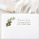 Return address label can be customized with your text. Featuring a watercolor holly greenery branch.