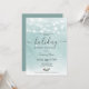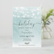 Winter wonderland snow typography holiday corporate party with white string lights green pine tree branches, red berries, ice blue watercolor and snow.