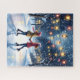 Capture the magic of winter nights with this enchanting puzzle featuring two friends ice skating beneath glowing lanterns and softly falling snow. A cosy winter village sets the perfect backdrop for this heartwarming holiday scene. The number of pieces and puzzle size can be customised to any of the other rectangular sizes offered, making it ideal for all skill levels and puzzle enthusiasts.