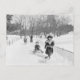 A winter scene in Central Park with children sledding along a snowy pathway. New York City, 1900.