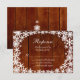 Lacy white, winter snowflakes decorate the border of this dark brown RSVP, that has an illustrated barn board background making it perfect for the rustic or county, winter wedding. If additional items are needed in this collection, just contact us at prettyfancyinvites@gmail.com with your request.