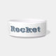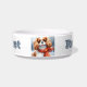 A pet bowl featuring a cute watercolor Cavalier King Charles wearing a red scarf in a cold landscape. Customisable.