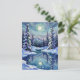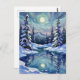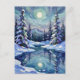 A serene landscape featuring a tranquil, frozen pond with a glowing full moon and snow-laden pine trees. The rich watercolor hues include deep indigos, lavenders, and muted greens, with subtle hints of frosty white. The brushwork is soft and blended, creating a dreamlike quality, with reflections rendered in a painterly blur that gives the scene a sense of deep quiet and winter's enchanting embrace.