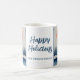 Winter Landscape Forest Orange Moon Navy Blue Drawing Holiday Mug. Calm winter snow landscape with forest. Happy holidays in a trendy script. Add your family name.