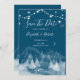 Winter wonderland, string lights and snowflakes save the date. Beautifully save the date that can be customised with your name. Select the "customise" button to change the font style, colour, and size.
