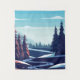Winter landscape square composition with copyspace.Winter background with nature, pine tree, hills, mountain illustration