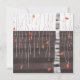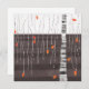 The Last of the Leaves. Minimalist contemporary landscape painting featuring a tree in late autumn or fall, at the beginning of winter with bright colourful falling leaves on a monochrome black and white abstract background. Original art by Nic Squirrell. Blank on the back for your own greeting.