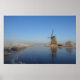 Poster print of a landscape in the countryside in the Netherlands in winter with a windmill, ice on the river and frosted reeds under a clear blue sky.