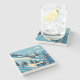 The coasters are gorgeous, a quality feel and heavy weight. They look like a precious archeological find. A rustic stone juxtaposed with a modern floral black and white print. I like the way the print goes slightly imperfect on the cut stone edges giving them a kind-of natural beauty.