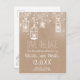 Rustic wedding save the date postcard with a brown paper kraft background. Featuring lanterns in white with winter snowflakes.