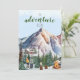 Winter Lodge in the Mountains Adventure Begins-Save the Date is a beautiful watercolor winter scene with a snowboarding couple enjoying a campfire surrounded with cosy log lodges and cabins, ski mountains with ski lifts. Personalise this card with your own photo to create special memories. Perfect announcement card for your wedding in the mountains, special family or holiday event in the mountains. Change the text to match your event.