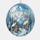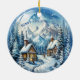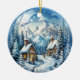 Winter Log Cabin Mountains Pinetrees Ceramic Ornament