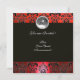 WINTER LOVE BIRDS BLACK WHITE RED DAMASK MONOGRAM INVITATION