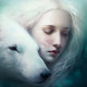 Find peace in the stillness of winter with our stunning "Winter Meditation" artwork. This breathtaking scene depicts a young woman with eyes closed in tranquil contemplation, an arctic companion by her side.