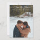 "Winter Modern Save the Date Minimalist Rustic with Engagement Photographs." You replace the photos with your own easily using the templates. Simple, modern script calligraphy handwriting with flourishes, "Save the Date" typography and your names, wedding date and location. Graphically designed by internationally licensed artist and designer, Audrey Jeanne Roberts.