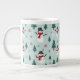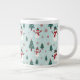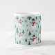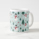 This is a mug with a winter feel. Snowmen, snowflakes, and Christmas trees come together.